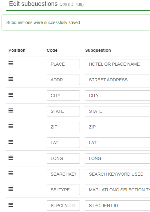 Problem: When saving such subquestions with longer codes as label set, the subquestion codes then get cut off. If I save the subquestions and then view the label sets, the codes are shortened but the user will not notice that.