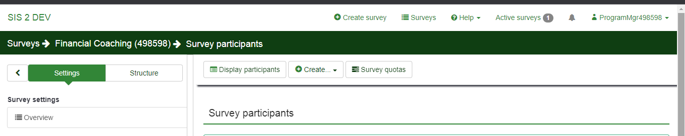 | Description | Set Permissions to only: Participant --> Read, create and import; at survey level. | ||||