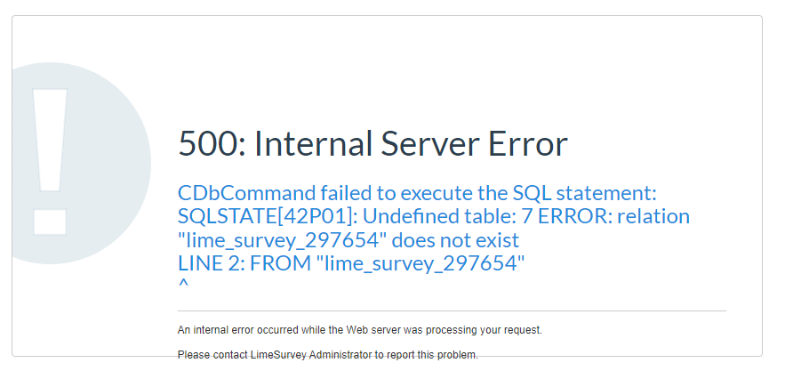 - The list of surveys is not accessible and an error page appears. See ls_error.png