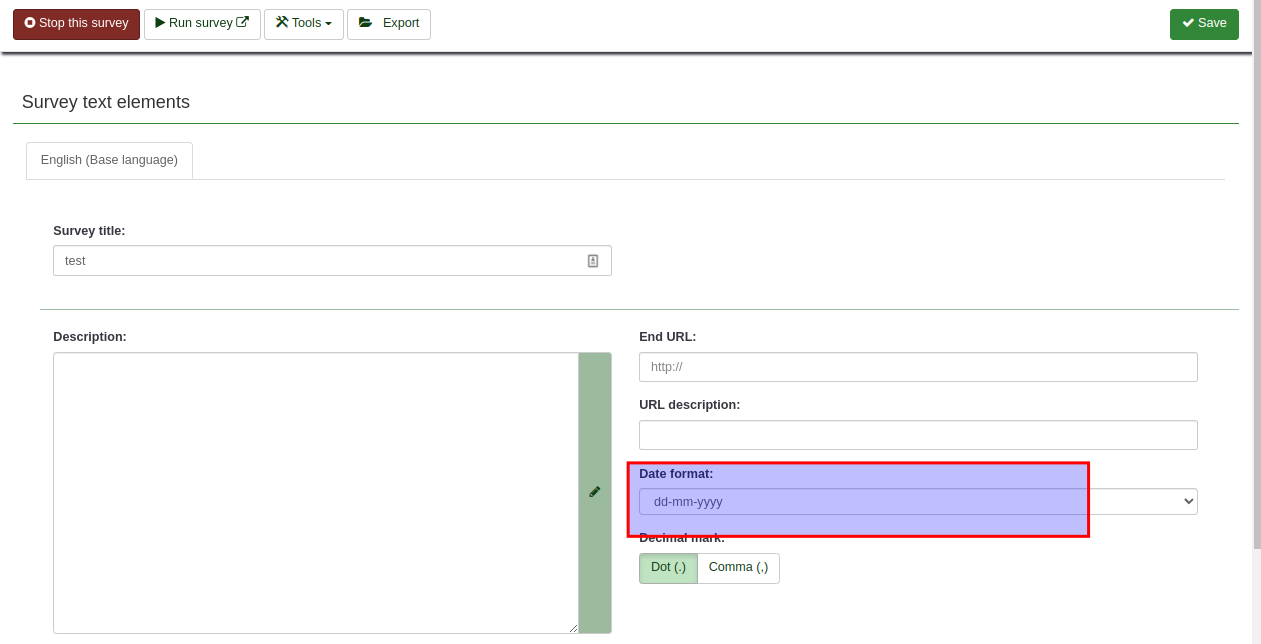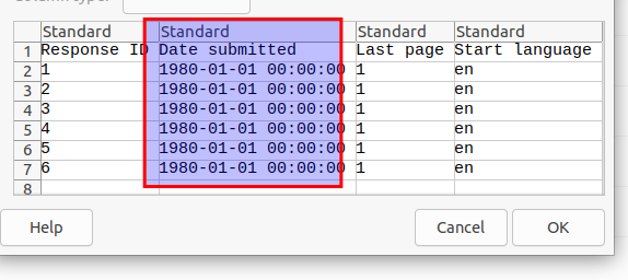 | Description | I could reproduce on 2 cloud installations. Attached are screenshots When there is a mismatch in the date format for the user and the survey, the dates are wrongly displaced. i.e, the submitted dates for the responses are displayed as "1980-01-01" | ||||