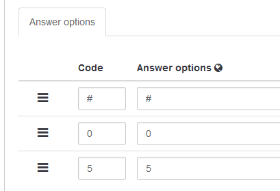 | Steps To Reproduce | Steps to reproduceCreate a survey, add a single choice question, add ", ' \" empty string or emoji on answer code, click save. Expected resultDisable some character in answer code : didn't save it … Actual resultSave it : no real control via model or PHP | ||||