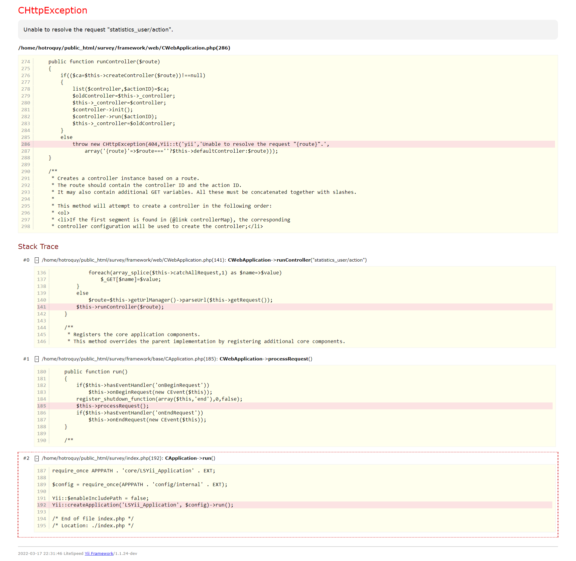 | Description | In LimeSurvey version 5.3.5 if I click on the link or type the address of public statistics it will display error 404: Unable to resolve the request "statistics_user/action". I just upgrade the system from 3.28.x to 5.5.x using Comfort Update. It still works on the 3.28.x. | ||||
