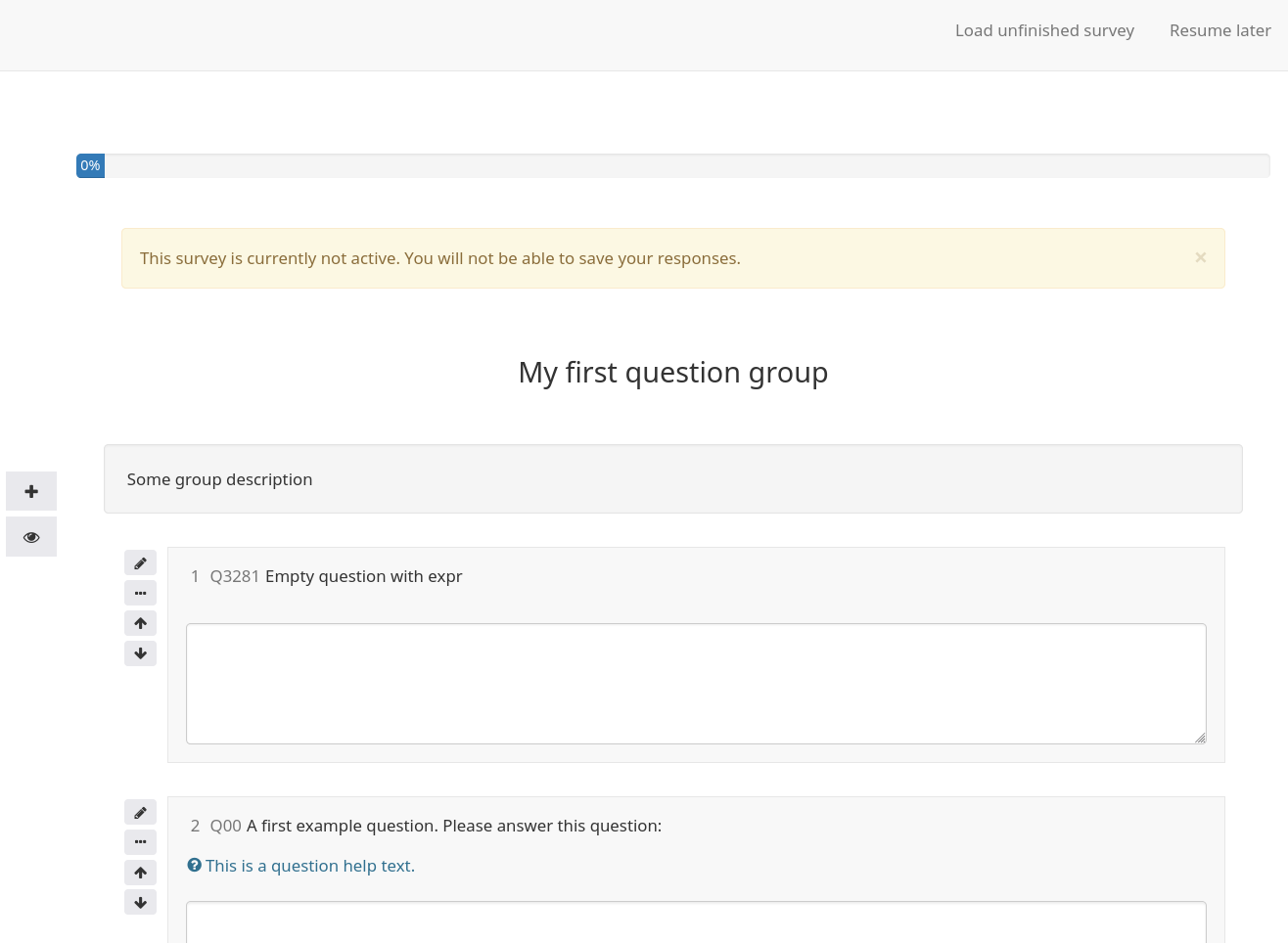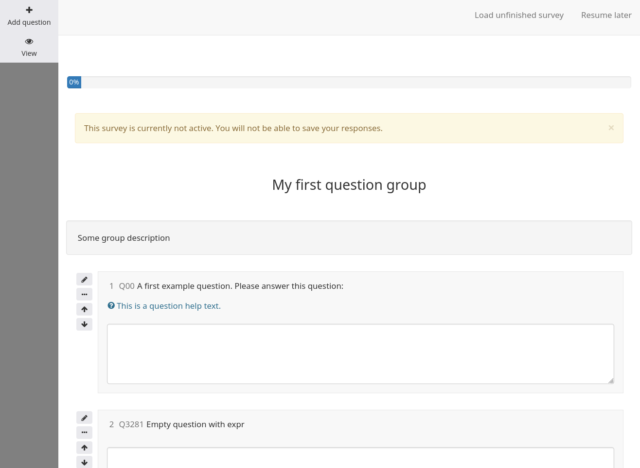 The fact that this issue attracts so many comments, means that people are very interested... ;-) I personally think that this feature is a must have. The thing that I am afraid of is that this is now built by a developer that explores things (great!) and that it will remain in this stadium. While having a truly easy-to-use interface is something where both developers, UX experts and users (both novice users as well as power users) have their own roles. Many times now new features stayed in the proof of concept stadium, which makes them usable for only smaller user groups (often power users only). But to conclude: great that you are working on this, but please, please, mark this as something that will need further development with UX experts and users as one of the tasks for the new UX expert that is/will be hired by LimeSurvey. |