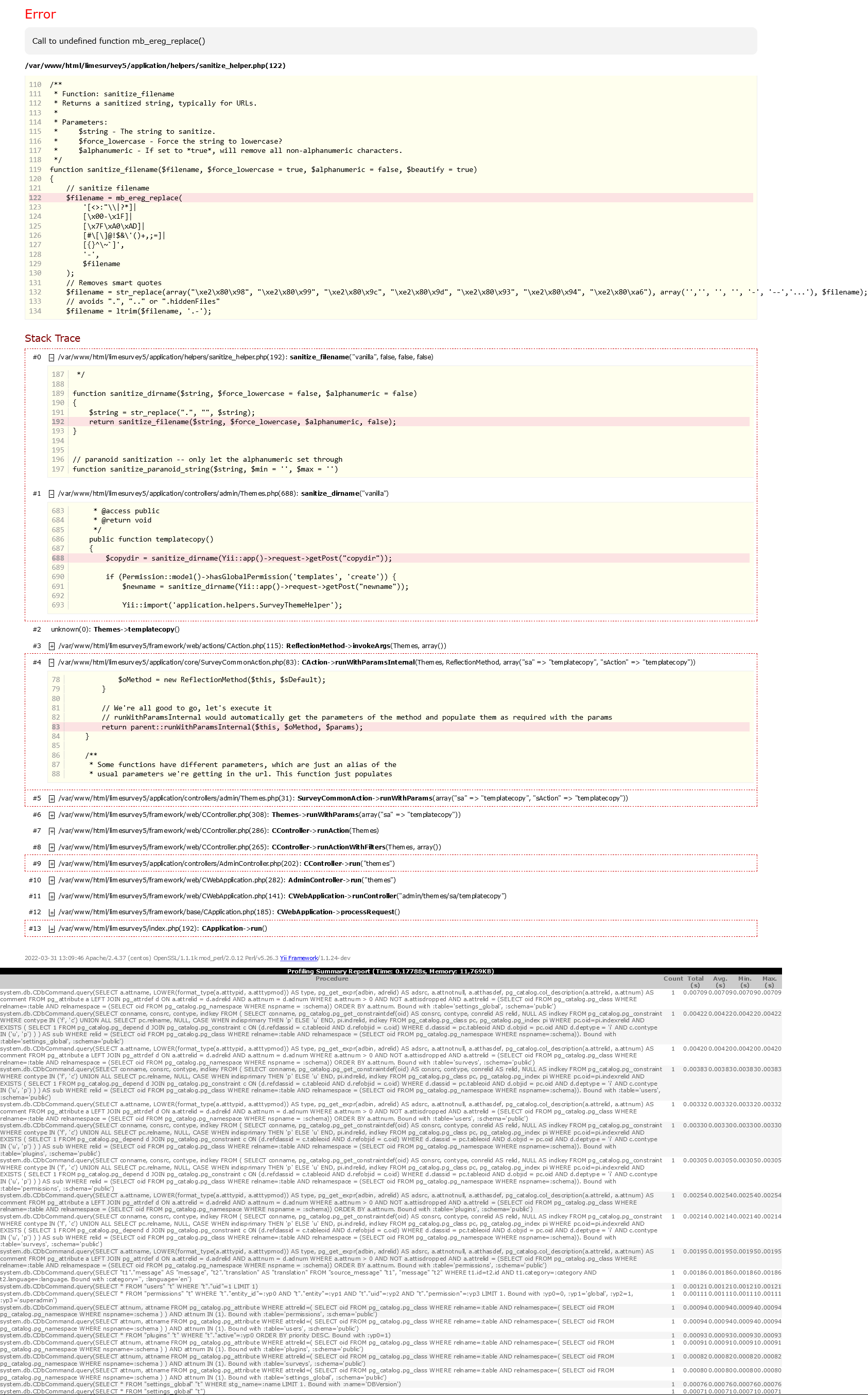 /var/www/html/limesurvey5/framework/web/CWebApplication.php(141): CWebApplication->runController("admin/themes/sa/templatecopy")