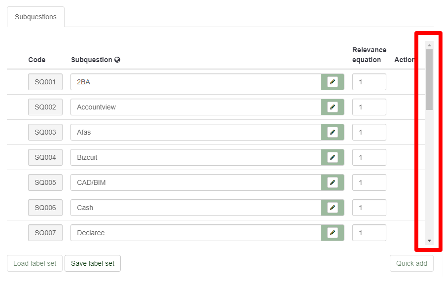 | Description | When you edit a question with a long list of options, this list is cut off. I think that that is not necessary and takes away the overview that a user needs. Please see picture | ||||