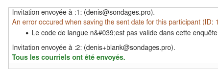 | has duplicate | 18436 | closed | DenisChenu | Remote control API : Inviting members with invalid language sends them an email but they're not marked as invited |