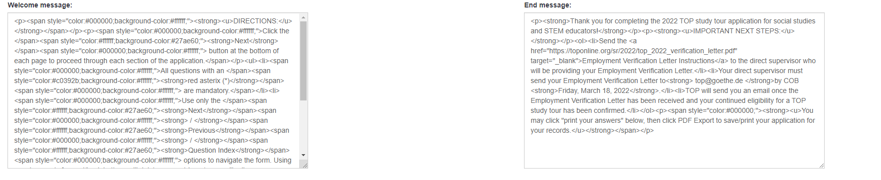 | Description | For example, under survey settings, text elements, welcome message: I can now only input or edit raw HTML code. The CSS style input box overlay which was there before is now missing. | ||||