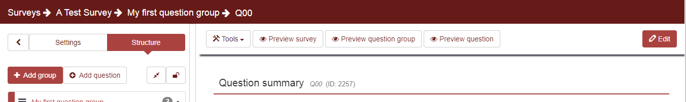 Focus error is gone, but vanishing Tools menu is not. Screenshot 2022-05-10 at 16-38-18 LimeSurvey Professional - Your online survey service.png (135,918 bytes) limesurvey_survey_739191.lss (23,851 bytes)