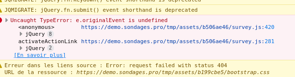 | related to | 18096 | closed | gabrieljenik | Unable to save survey with top link (and nothing happen) |