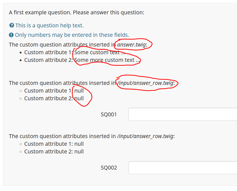 | Summary | 18100: Custom question attributes not available in some twig files | ||||