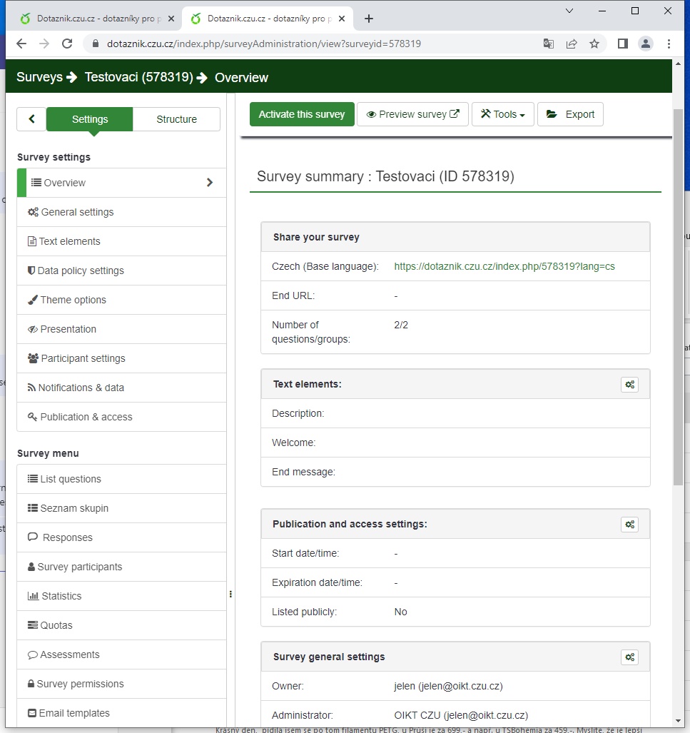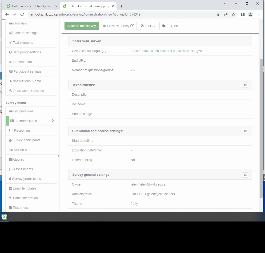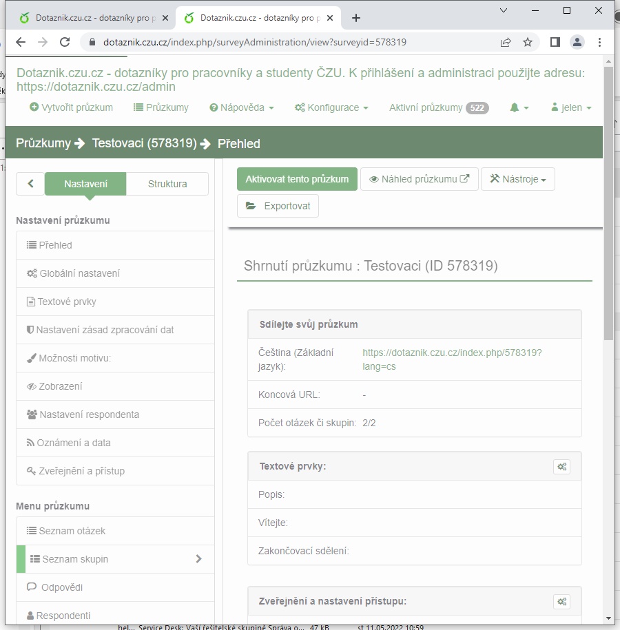 | Complete LimeSurvey version number (& build) | Verze 5.3.14+220516 | ||||