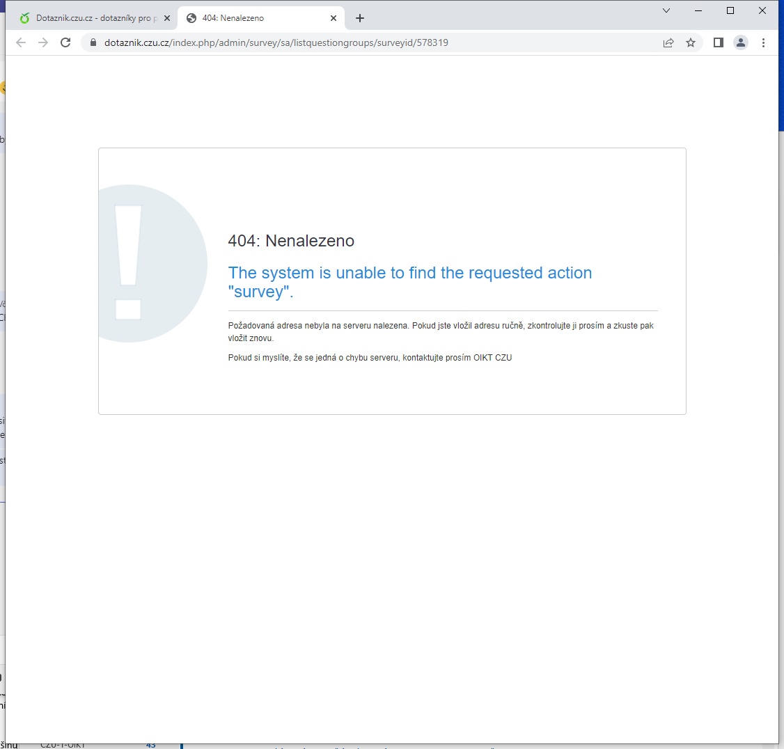 Can you try to right click on Seznam skupin, and open in new tab/windows. If you can activate debug mode before it's cool ! https://manual.limesurvey.org/Debug_mode |