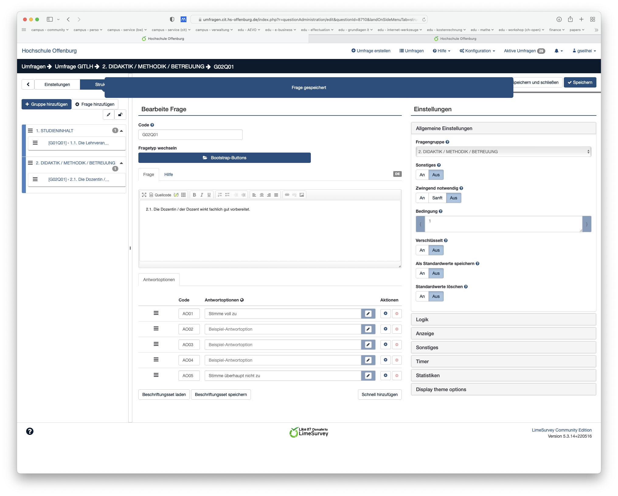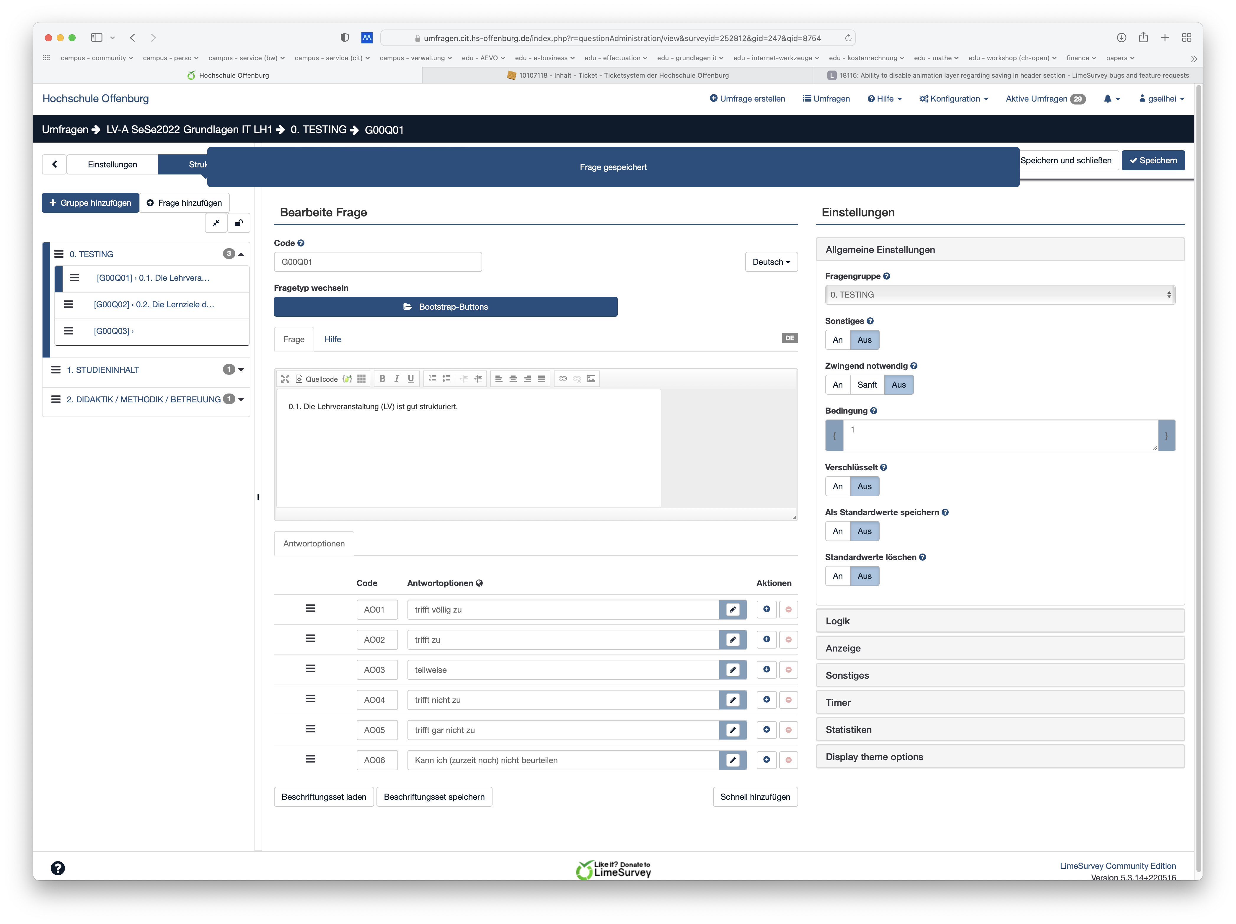| Complete LimeSurvey version number (& build) | Version 5.3.17 | ||||