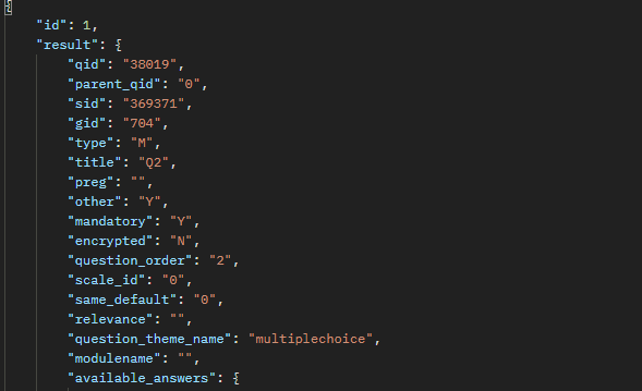 | Summary | 18135: Cant get all question attributes with API (Postman) | ||||