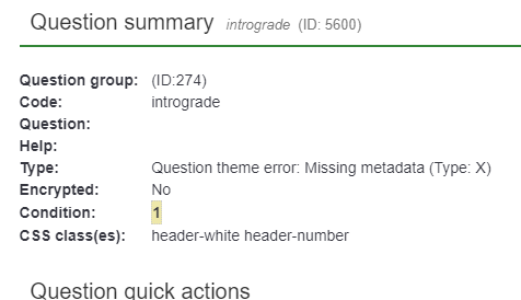 | Summary | 18192: Question theme error: Missing metadata (Type: X) | ||||
