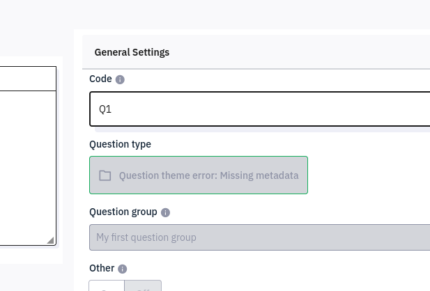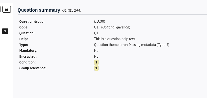| Summary | 18193: Question theme error: Missing metadata (Type: X) | ||||