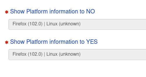 <question><![CDATA[<p> Show Platform information to NO</p>