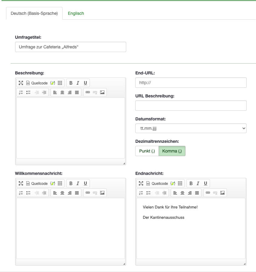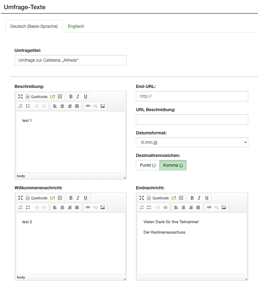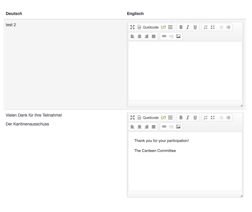 | Description | Hi all, if the welcome text and end note editor is filled out in the base language (German in my case), it appears in the quick translator. Kind regards | ||||