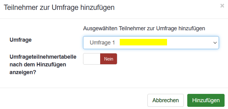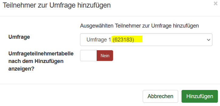 | Description | add the surveyId to the selectbox for better identification Umfrage 1 (112233) | ||||