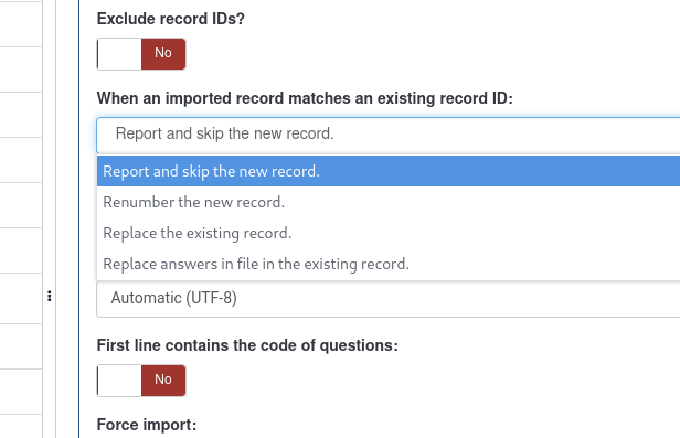 Importing responses from an old table with the "Preserve response IDs" option fails if there are already responses with the same ID: Integrity constraint violation: 1062 Duplicate entry '1' for key 'lime_survey_591164.PRIMARY