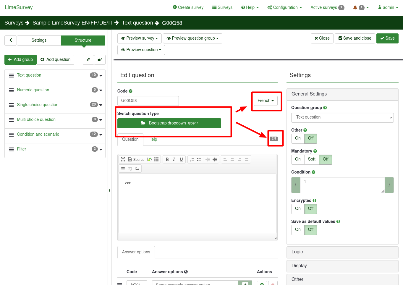 | Summary | 18270: Language switch is not repopulated correctly after change question type | ||||