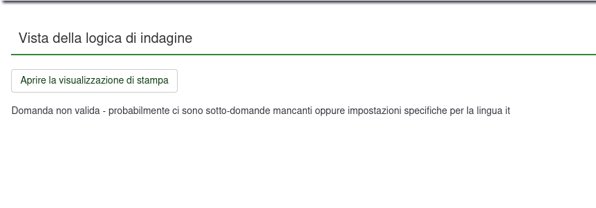 | Steps To Reproduce | Steps to reproduceIf i set Expected resultvalidation is ok and let me go to the following group Actual resulti get the modal window "Non è stata fornita una risposta valida ad una o più domande. Non è possibile continuare finchè queste risposte non siano valide." CounterproofIf i set | ||||