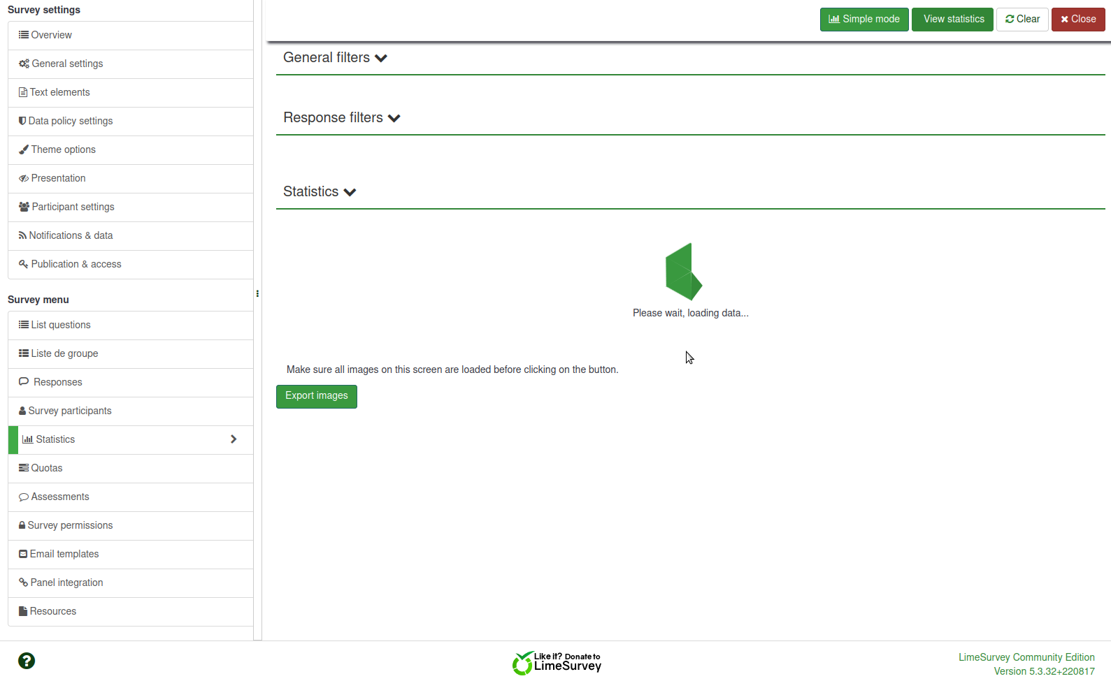 | Complete LimeSurvey version number (& build) | 5.3.32+220817 | ||||