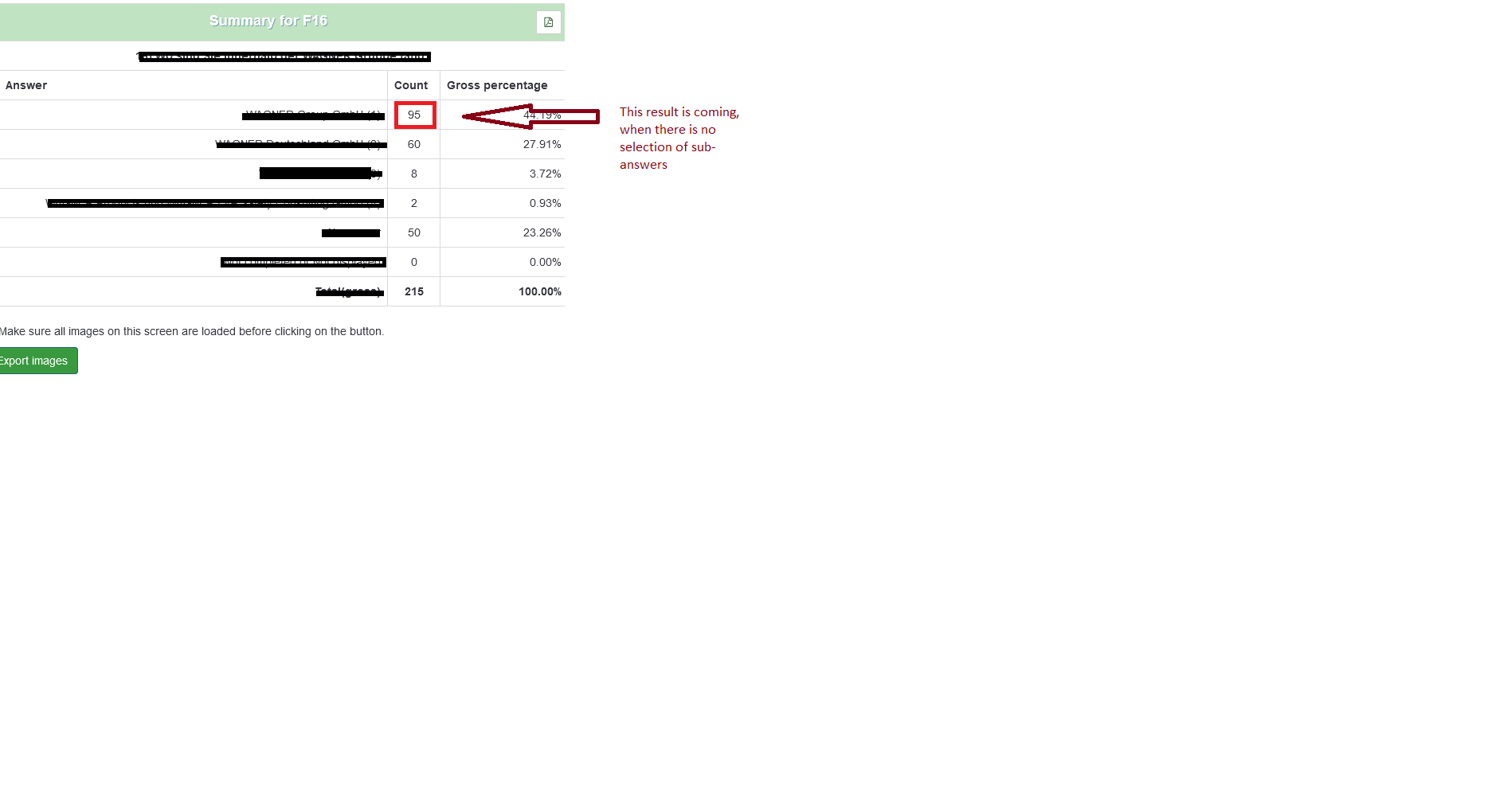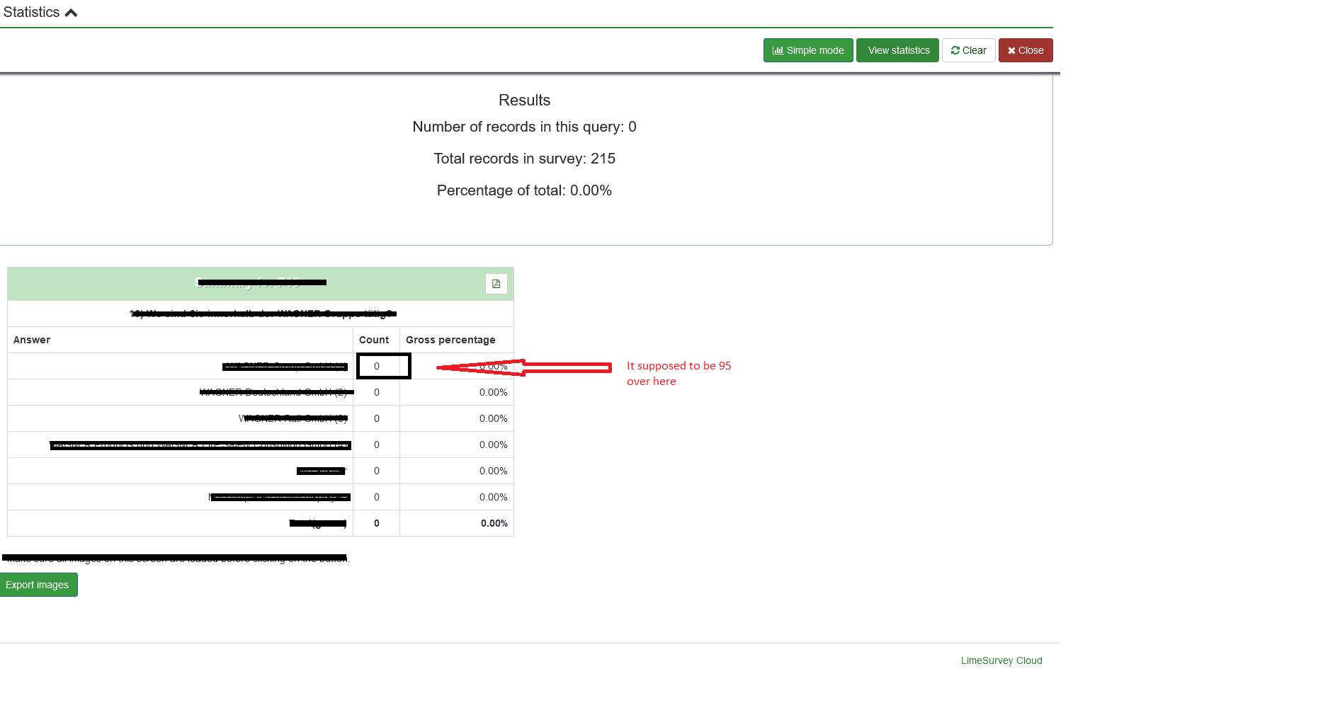 | Steps To Reproduce | ####steps to reproduce- Expected result-the accurate result of what I have selected, 95 participants have selected that answer... Actual result-but the answer is zero instead of 95 | ||||
