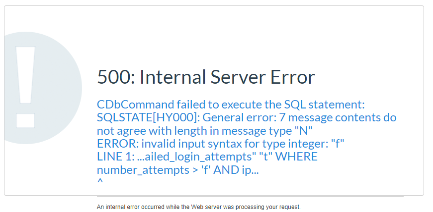 | Description | I originally didn't know the cause of this bug, and filed a misleading issue here: https://bugs.limesurvey.org/view.php?id=18389. The error being raised is the same. From what I can tell, this isn't an issue with any of the surveys using closed-access mode already. Only survey that are being created now. 2022/10/03 17:30:11 [error] [system.db.CDbCommand] CDbCommand::fetch() failed: SQLSTATE[HY000]: General error: 7 message contents do not agree with length in message type "N" | ||||