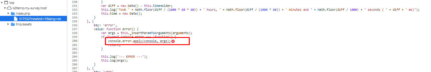 | Steps To Reproduce | Steps to reproduceImport the attached LSS file at LS 3.x and run the survey. Check conditions at question T554. Expected resultDepending on selection at T554 the follow up question T555 or T561 should show up. Actual resultJS error shows at concole | ||||