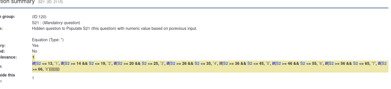 | Description | We are running a test survey at latest LS3.x which we imported from an older 2.06 system. At the old system that survey worked fine. At the latest 3.x version conditions on page do noit get triggered correctly. You can test the old survey at https://ls206lts.mysurveyhosting.com/index.php/517552?newtest=Y. When selecting an answer at question T554, the follow up question T555 or T561 appears depending in your selection. I see a JS error on page load at LS 3.x as well as an additional error when answering T554, see screenshot: There are two equation questions "equationage" and "equationregion". They are pre-filling the hidden questions T551 and T553 within the same group. This works perfectly fine at LS 2.x but seems to throw the JS errors at LS3. Solution 1: When commenting out the equations, the JS errors on page disappear. But approaches are no real solutioins at all since a survey copied from 2.0x to 3.x should work out of the box. The customer is planning to update from 2.x to 3.x but can't manually adjust dozens of surveys. So this should be fixed at the code | ||||