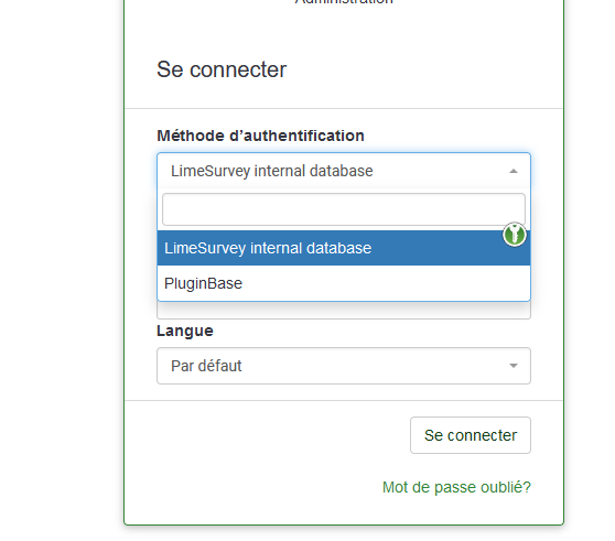 | Description | Hello dear, I juste want to inform you that, on our self-hosted instance of LimeSurvey with the default AuthLDAP plugin, the authentication modal labels the LDAP authentification option is labelled as "PluginBase" rather than "LDAP" as it was the case previously. I'm attaching two images: the former modal (LDAP-previous modal.png) and the current (Current modal.png). Regards, Jérémie Parisel, Pro Velo | ||||