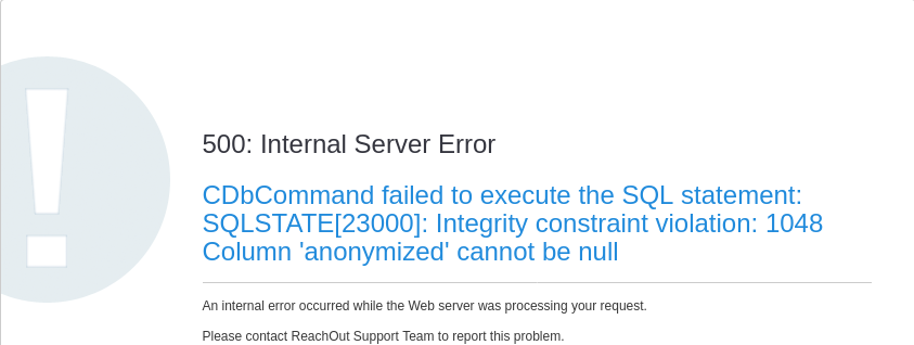 | Summary | 18418: 500: internal server error CDbCommand failed to execute the SQL statement + partially broken HTML in activate screen | ||||