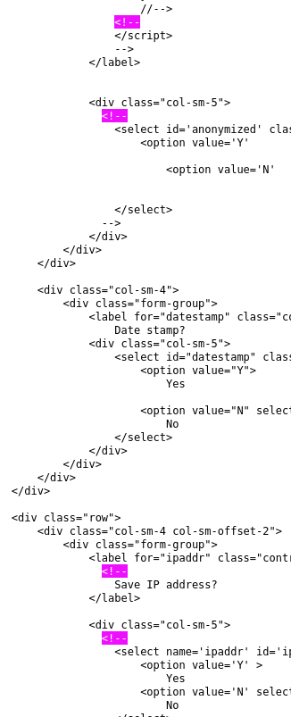 I believe the HTML issue is creating the error on the DB Query. Can you activate debug mode before loading the "Activate survey" screen you showed us here: https://bugs.limesurvey.org/view.php?id=18418#c72277 Also, can you try with a chrome browser as well? Thanks Thanks |