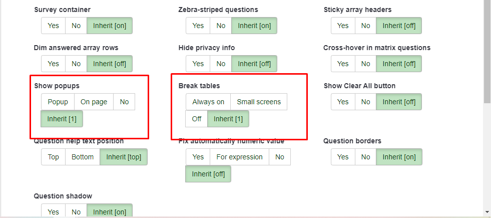 | Description | Fruity theme has option "Show popups", and it shows option "Popup", "On page", "No", and "Inherit [1]". Seems that DB value 1 is not converted to text representation in inherit-button. | ||||