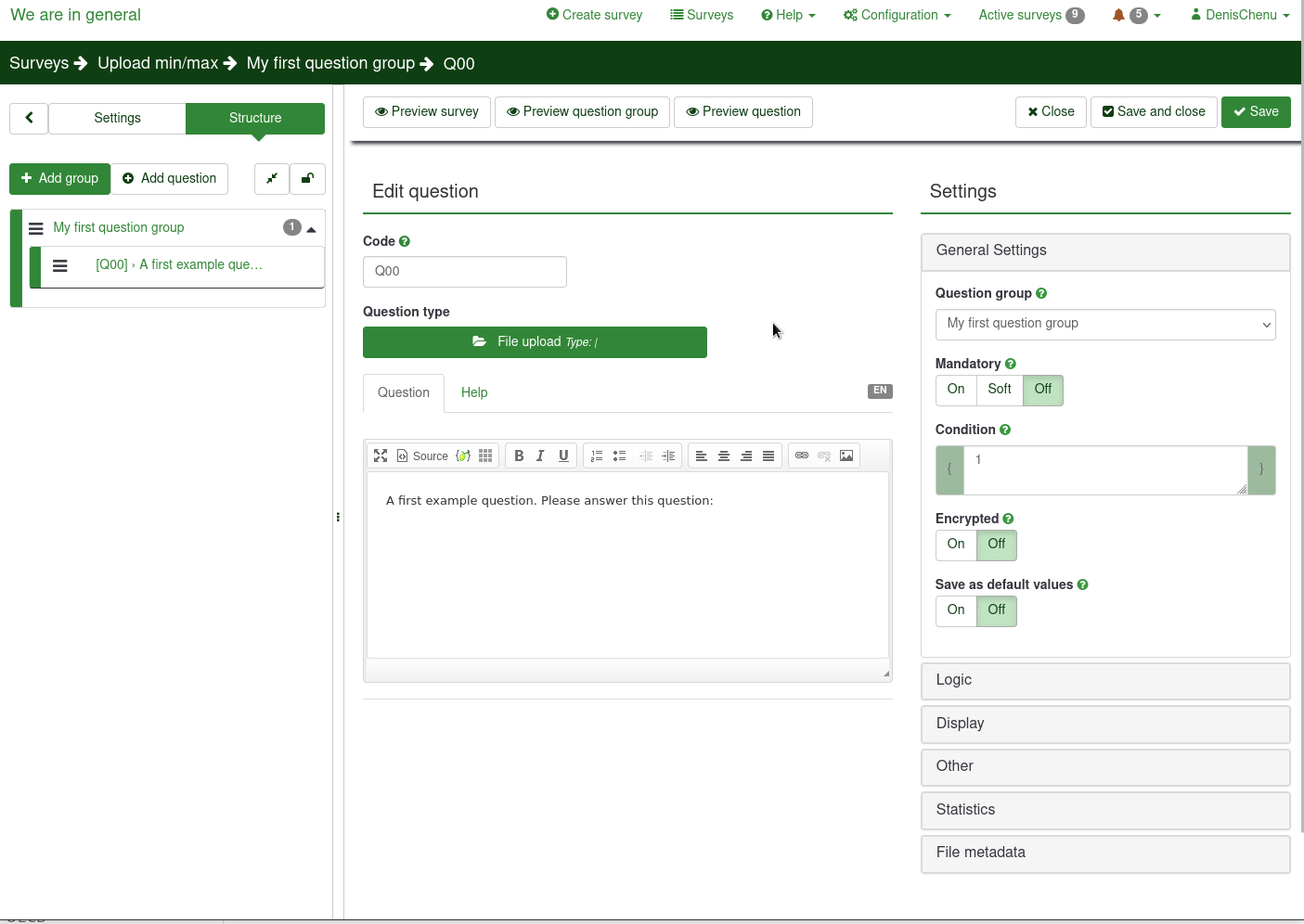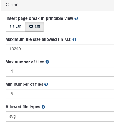 @tibor.pacalat : you say to Gabriel on https://bugs.limesurvey.org/view.php?id=18495#c75099 «if the system wasn't designed to support this, this is clearly a feature request. Otherwise, it is a bug.» The Question advanced settings system are NOT designed to allow to control min_files <= max_files |