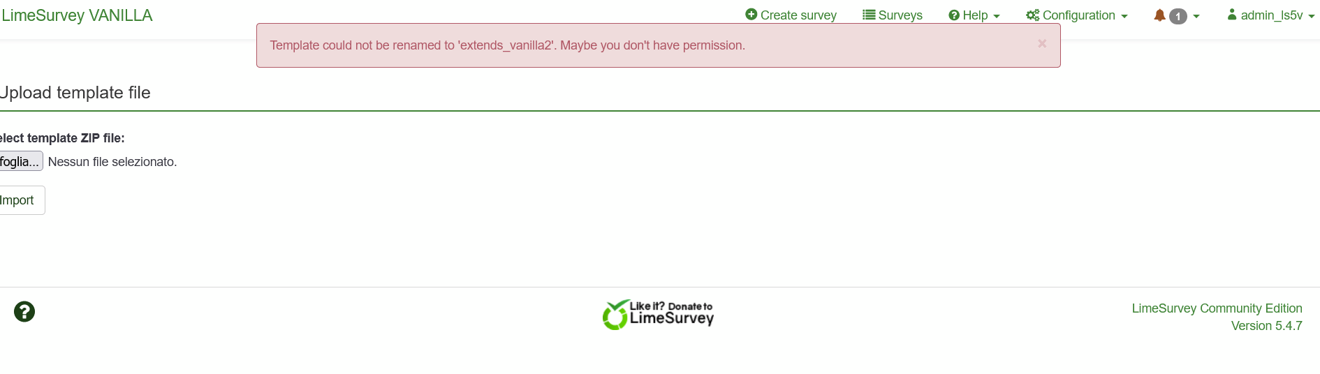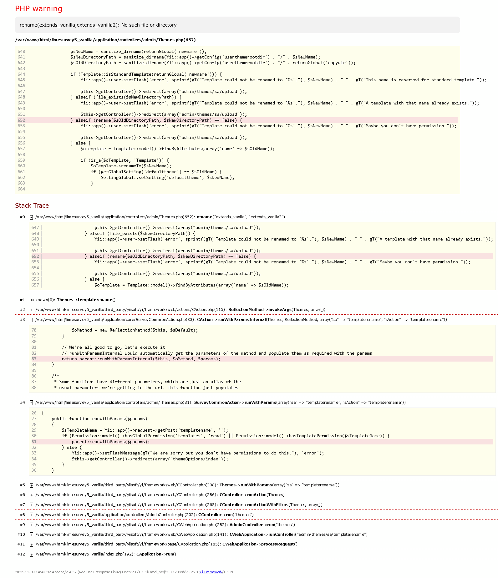 | 2022-11-09 16:37 | DenisChenu | Summary | Template could not be renamed to 'xxx'. Maybe you don't have permission. => User SurveyTheme could not be renamed |