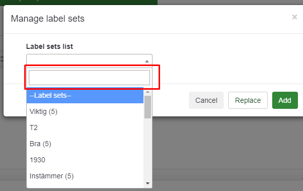 | Description | When adding a label set e.g. at the "edit responses" screen, the loaded label sets can not be searched. The search field seems to be disabled, you can not click into it, see screenshot. | ||||