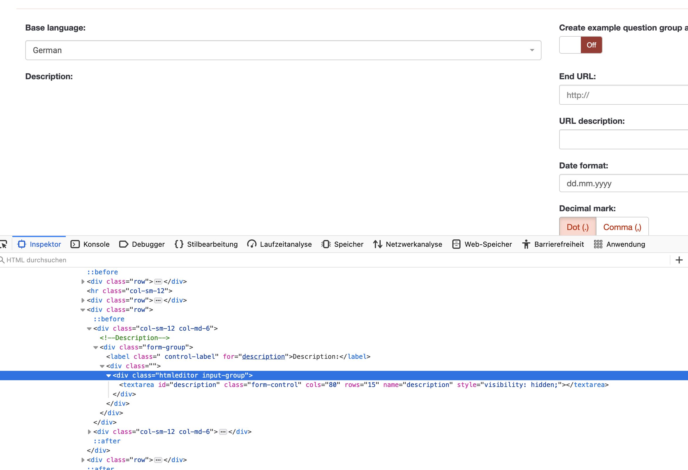 | Description | Text areas are hidden in new and existing surveys. Administrator cannor edit or create surveys. See screenshots. I updated from 3.28.38 to 3.28.39 on 2022-11-21. And first complaints from users came in on the same day. Therefore I would blame the update for the bug. | ||||