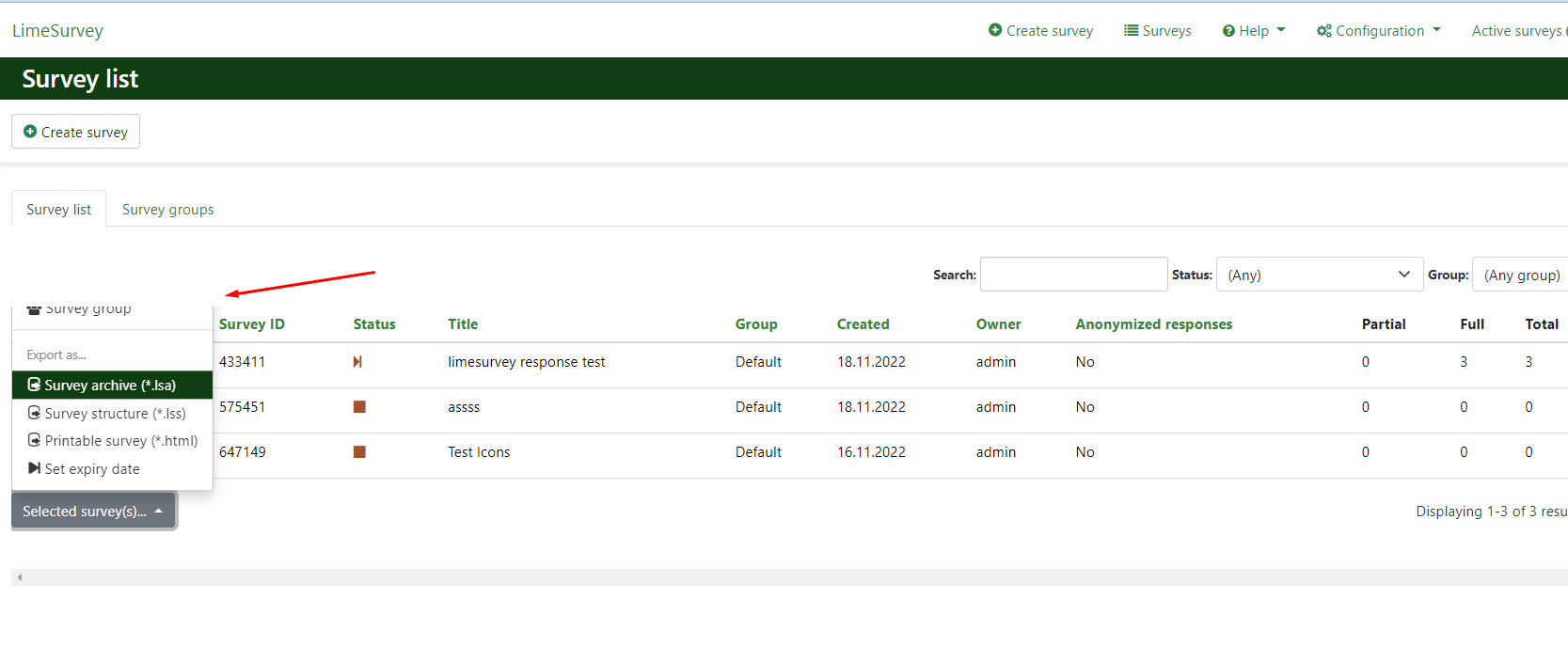 | Complete LimeSurvey version number (& build) | demo | ||||