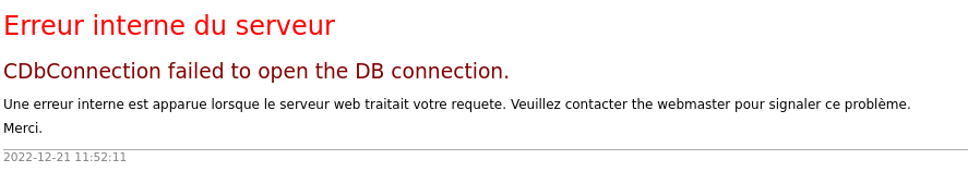 With bad credentials we have clean 500 error with CDbConnection failed to open the DB connection (out of CI). Web: see screenshot CLI :