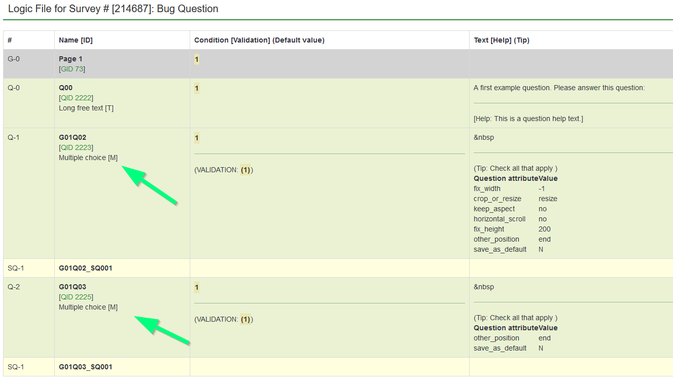 The questions are still not visible. Another thing: when we take the logic file of the questionnaire, we realize that for the two questions of type radio buttons and List of images (Radio), the type is L Looks like there are duplicates. Expected resultNot the same question Actual result | ||||