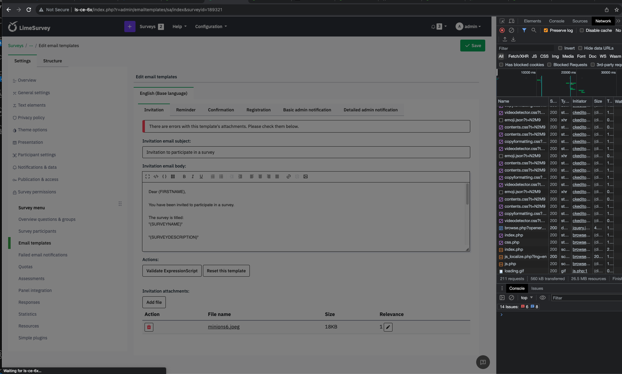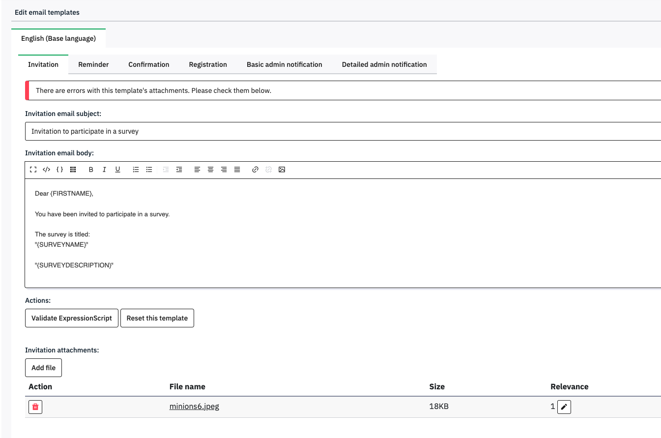 | 2023-01-31 20:08 | gabrieljenik | Summary | Email Template Attachments appear to carry over with copied survey, but do not work => When surveys are copied without copying attachments, attachment info is copied but not updated. |