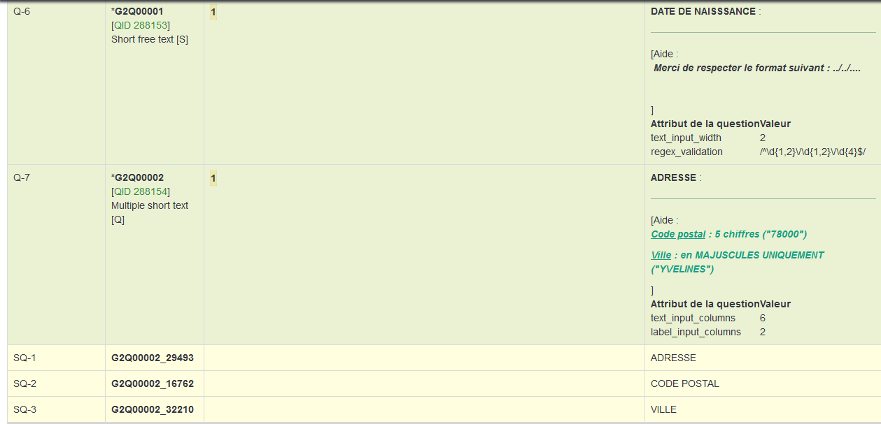 | Description | Hello, I did the following to select tables: select 'DROP TABLE ' AS constant1 , from information_schema.tables where table_catalog = 'limesurvey' This works fine, and generates the list of affected tables for me.... But looking at the log file, we see that errors on the selection of the lime_questions table are present: 2023-02-02 11:12:27.075 CET [28495] ERROR: Value '28815429493' is out of bounds for type integer at character 52 the value for each line (if I have sub questions) exceeds the limit of the number of characters for the type integer. Looking in more detail, I see that if in the code of the sub-question does not start with a letter (ex: SQ1) and that we only have numbers, the request will take the code of the sub-question which is a title, as the internal code of the subquestion. Users imported a template questionnaire, which contained sub-questions with only numbers, and as they have a lot of duplicate questionnaires (2000 lines of errors with the sub-questions), the processing time during the integrity check data, then cleaning (which crashes for me) takes a long time. | ||||