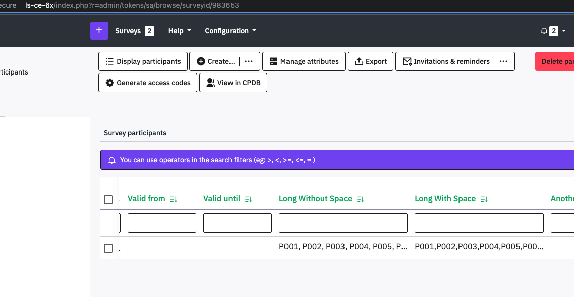 | Complete LimeSurvey version number (& build) | 5.50 + 3.28.46 | ||||