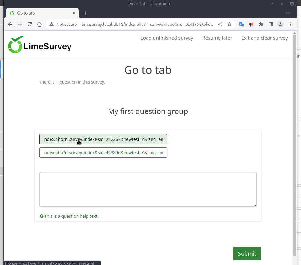 | Complete LimeSurvey version number (& build) | 5.50 + 3.28.46 | ||||