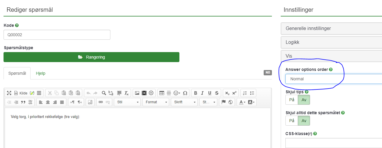 | Steps To Reproduce | Edit a question. Select the Show tab. The "Answer options order" is not picked from language files. As well as the drop down options and the tool tip. See screenshot. | ||||