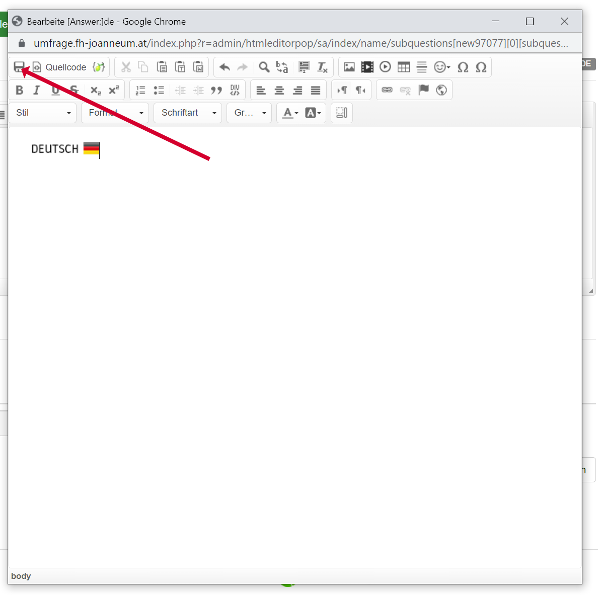 Ok, but what is with the problem, that LimeSurvey inserts the HTML-Code? |
