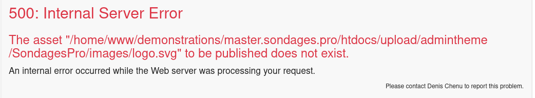 | Description | If you have an 5.X adminTheme and update to last master : receive error about htdocs/upload/admintheme/SondagesPro/images/logo.svg | ||||