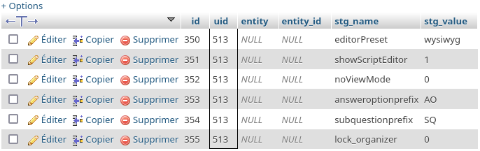 | Steps To Reproduce | After the creation of the account (tb lime_settings_user) : cf create_cpt.png Menu "My login > My account > My personal settings > Save and close" (tb lime_settings_user) : we notice the addition of "ShowScriptEditor Back to the edition of my question : it's perfect ! Translated with www.DeepL.com/Translator (free version) | ||||